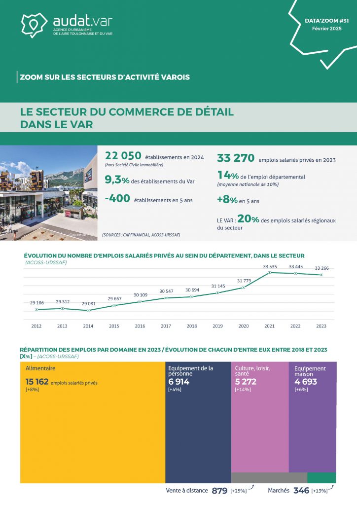 Dans la série des data’zoom sur les secteurs d’activité varois, ce mois-ci, nous vous proposons de découvrir les données récentes du secteur « commerce de détail ».