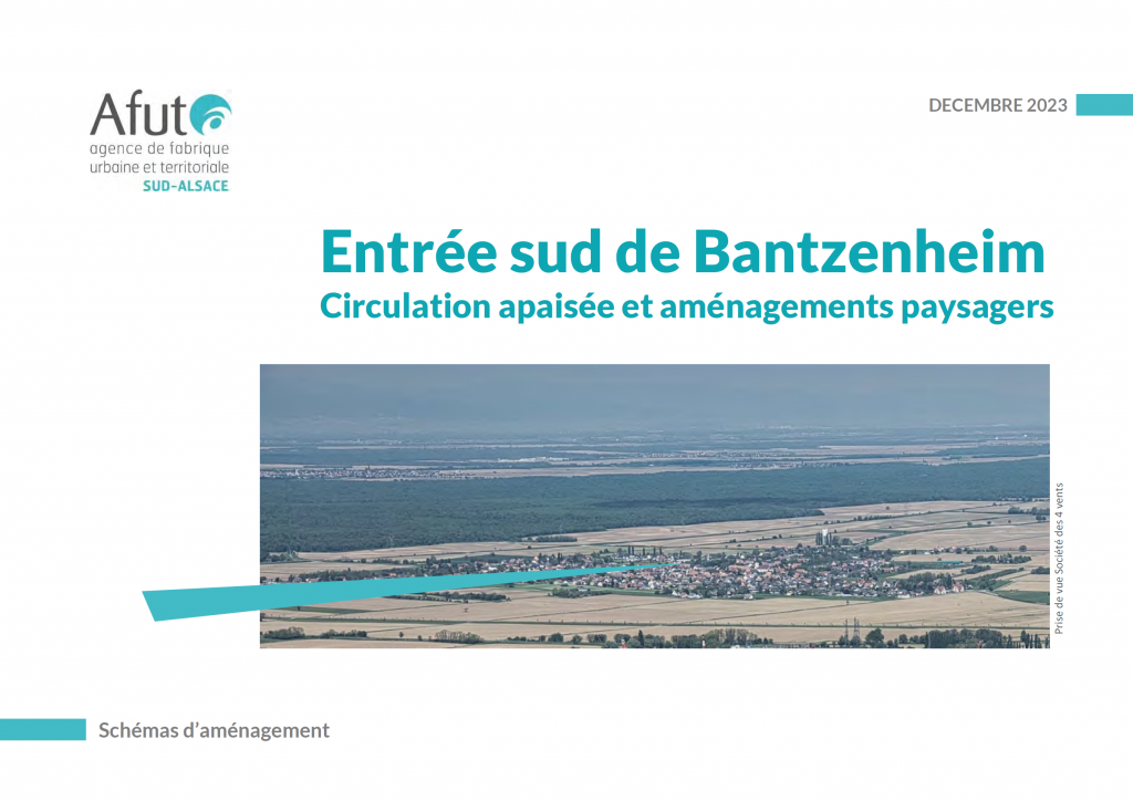 Le schéma d’aménagement présenté dans le document illustre les réflexions menées par les élus et les habitants pour répondre aux enjeux de circulation, de vitesse, de sécurité et de cadre de vie à Pfastatt.