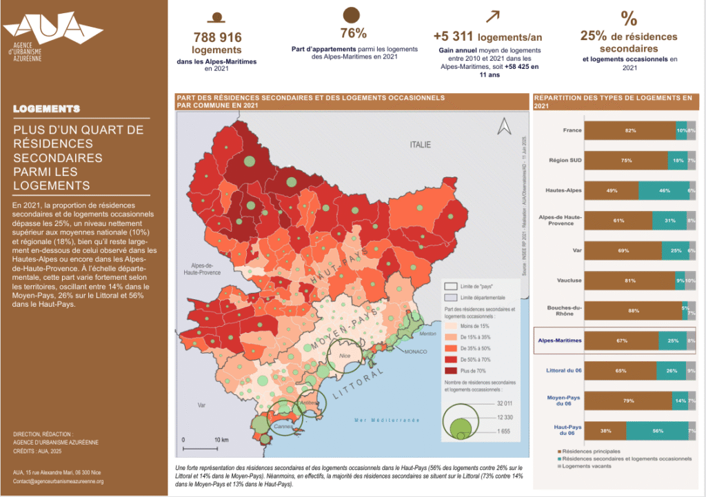 À l’échelle départementale, cette part varie fortement selon les territoires, oscillant entre 14% dans le Moyen-Pays, 26% sur le Littoral et 56% dans le Haut-Pays.