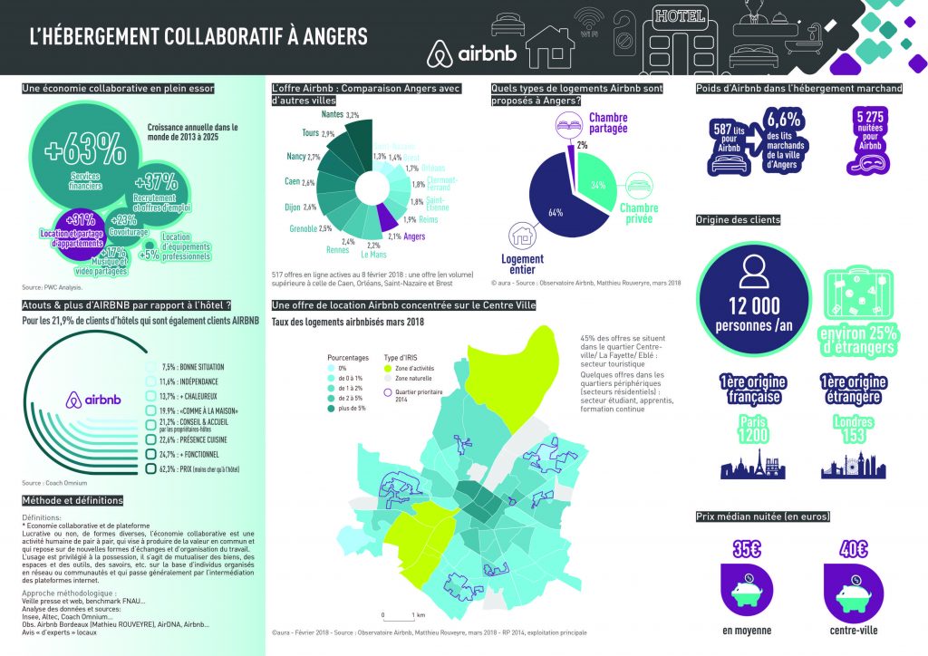 L’agence propose de mettre en avant quelques éléments de cadrage, au niveau national et local, afin d’analyser au plus près l’impact de l’hébergement collaboratif, à travers le phénomène Airbnb, sur l’hôtellerie traditionnelle ou le parc résidentiel angevin.