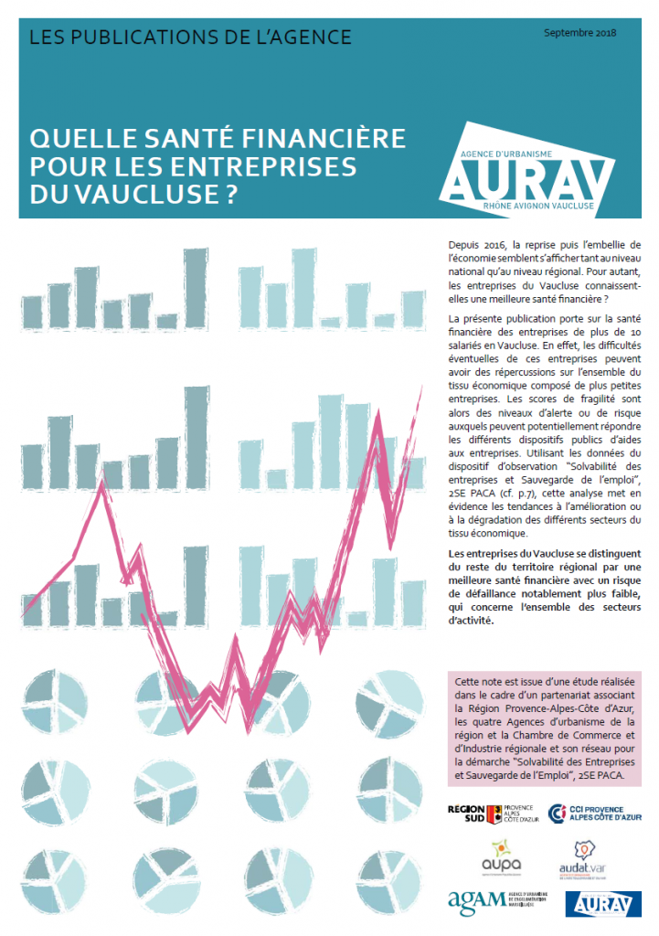 Ce constat est issu d’un travail partenarial entre la Région Sud Provence-Alpes-Côte d’Azur, les quatre Agences d’urbanisme dont l’AURAV, et la Chambre de Commerce et d’Industrie Régionale intitulé « Solvabilité des Entreprises et Sauvegarde de l’Emploi en Provence-Alpes-Côte d’Azur », 2SE PACA.