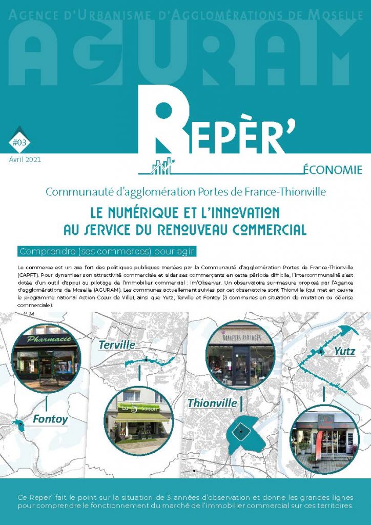 Le commerce est un axe fort des politiques publiques menées par la Communauté d’agglomération Portes de France-Thionville (CAPFT). Pour dynamiser son attractivité commerciale et aider ses commerçants en cette période difficile, l’intercommunalité s’est dotée d’un outil d’appui au pilotage de l’immobilier commercial : Im’Observer. Un observatoire sur-mesure proposé par l’AGURAM. Les communes observées sont Thionville (qui met en œuvre le programme national Action cœur de ville), ainsi que Yutz, Terville et Fontoy (3 communes en situation de mutation ou déprise commerciale). Ce Reper’ fait le point sur la situation de 3 années d’observation et donne les grandes lignes pour comprendre le fonctionnement du marché de l’immobilier commercial sur ces territoires.