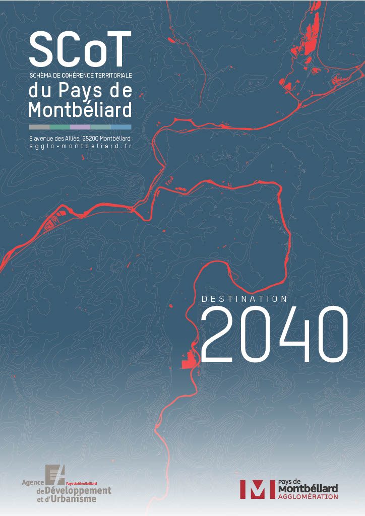Pour faciliter l’appropriation du SCoT du Pays de Montbéliard et la mise en œuvre de ses prescriptions, un document de synthèse « Destination 2040 » a été réalisé par l’ADU. Organisé autour des 3 défis de transition économique, d’amélioration du cadre de vie et de performance, il présente les dynamiques territoriales de l’agglomération autour de 12 thématiques, les objectifs à atteindre et les prescriptions le permettant. En quelques pages, il permet une compréhension rapide du projet de territoire de l’agglomération, dans toutes ses composantes économiques, urbaines et environnementales.