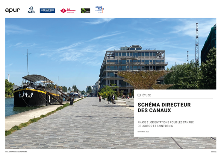 Réalisé dans le cadre d’une coopération entre la Ville de Paris, la Seine-Saint-Denis, Est Ensemble, Plaine Commune et Grand Paris Grand Est, le schéma directeur des canaux établit une vision stratégique partagée et simultanée pour les canaux de l’Ourcq et de Saint-Denis. Récemment voté par les instances de chaque collectivité, il est le fruit d’une année de travaux en commun et d’ateliers menés par l’Apur.