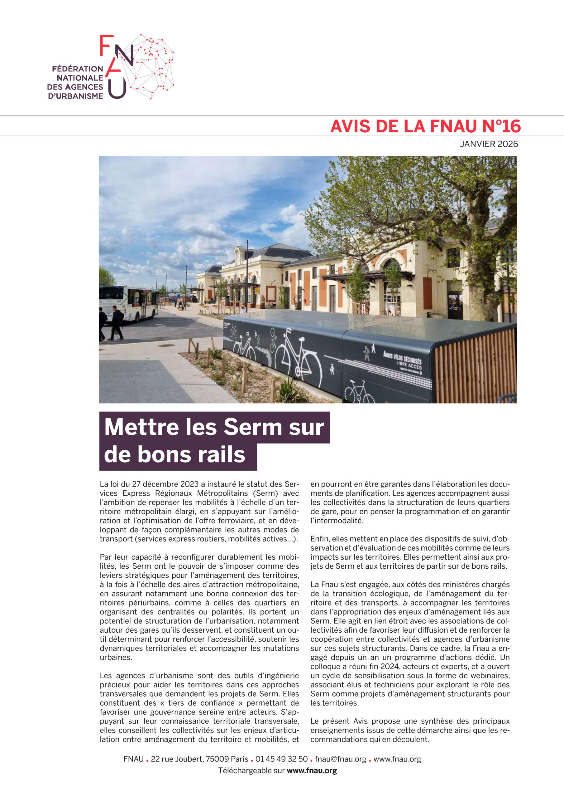 Avis Fnau n°16 – Mettre les Serm sur de bons rails