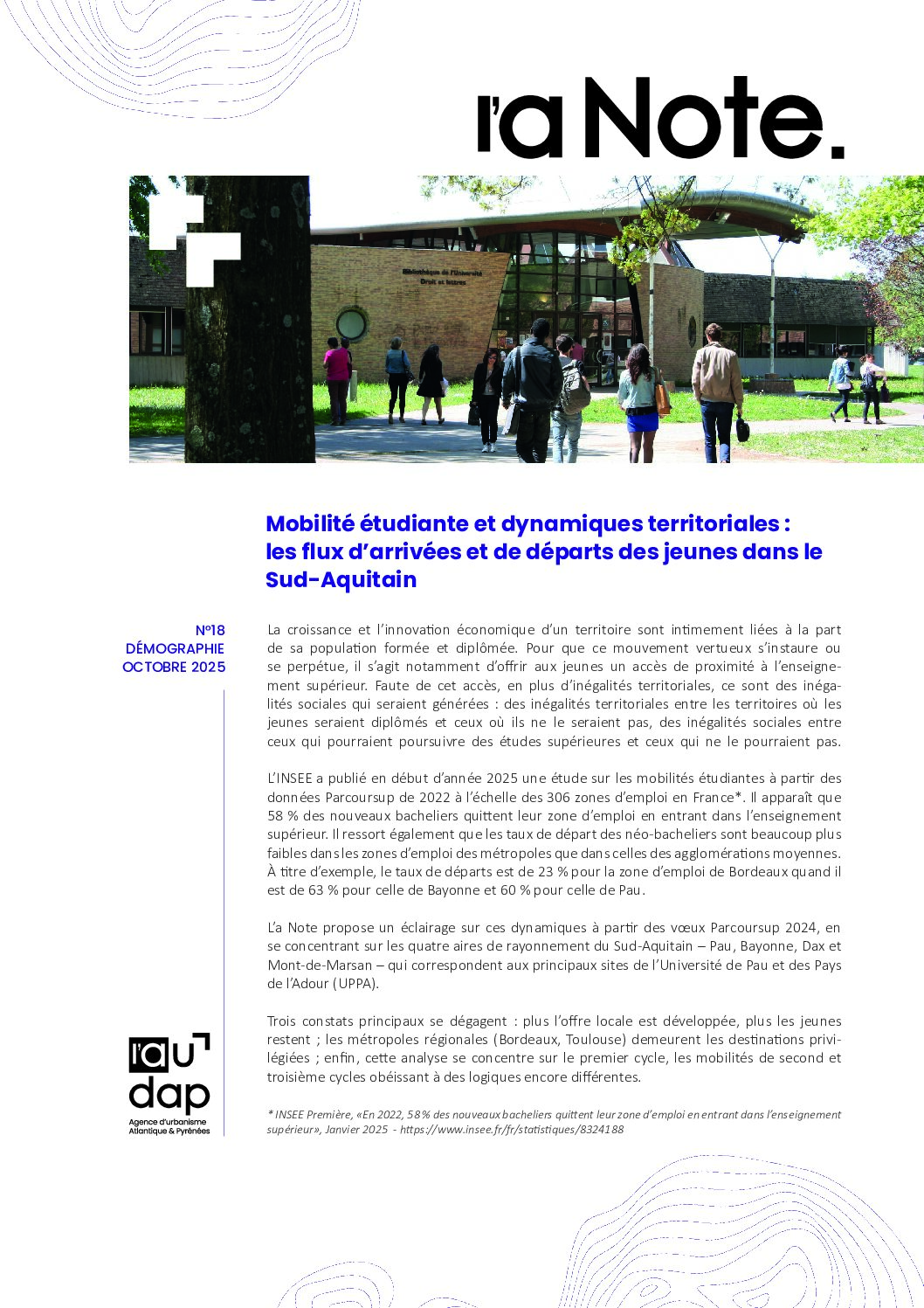 L’a Note #18 | Mobilité étudiante et dynamiques territoriales : les flux d’arrivées et de départs des jeunes dans le Sud-Aquitain