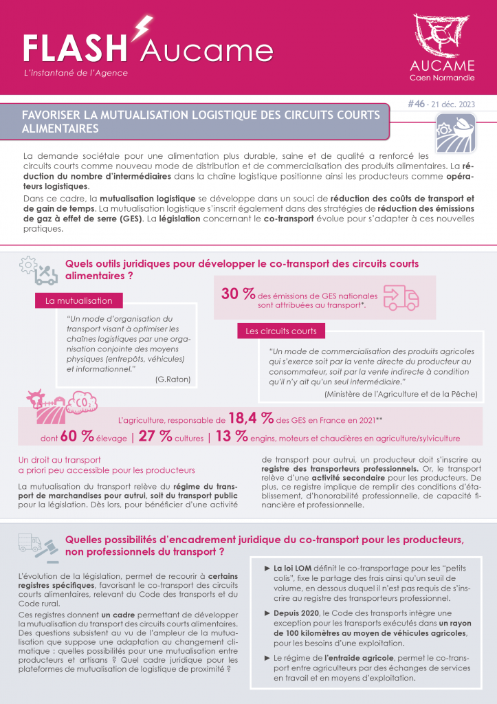 Flash’Aucame #46 : Favoriser la mutualisation logistique des circuits courts alimentaires