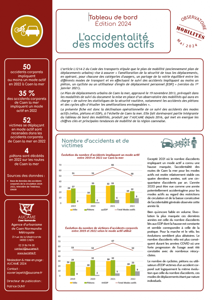 Observatoire des mobilités – Tableau de bord Édition 2024 : L’accidentalité des modes actifs