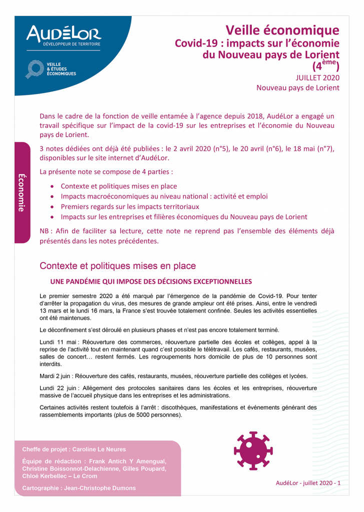 Covid-19 : impacts sur l’économie du Nouveau pays de Lorient (note n°4)